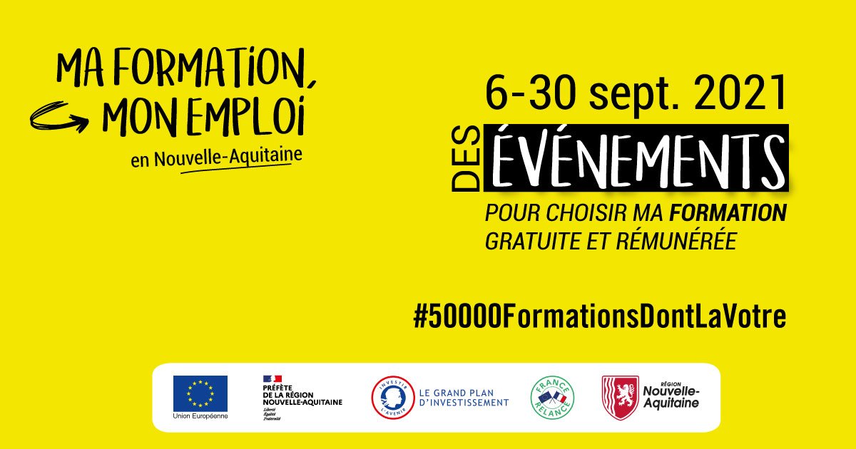 La Région Nouvelle-Aquitaine, en lien étroit avec l’Etat, lance la campagne « ma formation, mon emploi en Nouvelle-Aquitaine » qui se déroulera du lundi 6 septembre au jeudi 30 septembre 2021.